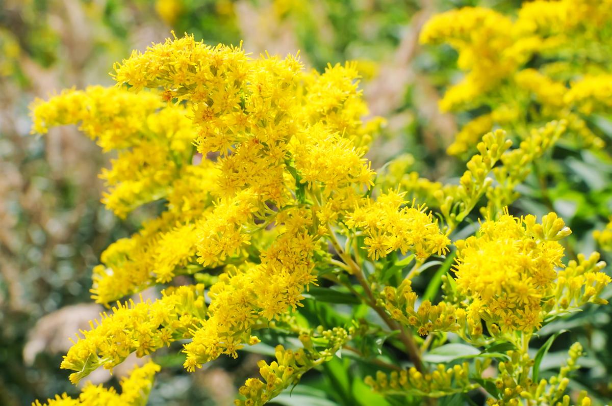 Золотарник привлекает внимание своими насыщенными желтыми пирамидальными соцветиями, которые украшают осенний сад до наступления холодов. Его яркие цветы придают саду особую атмосферу и делают его живописным даже в холодное время года.