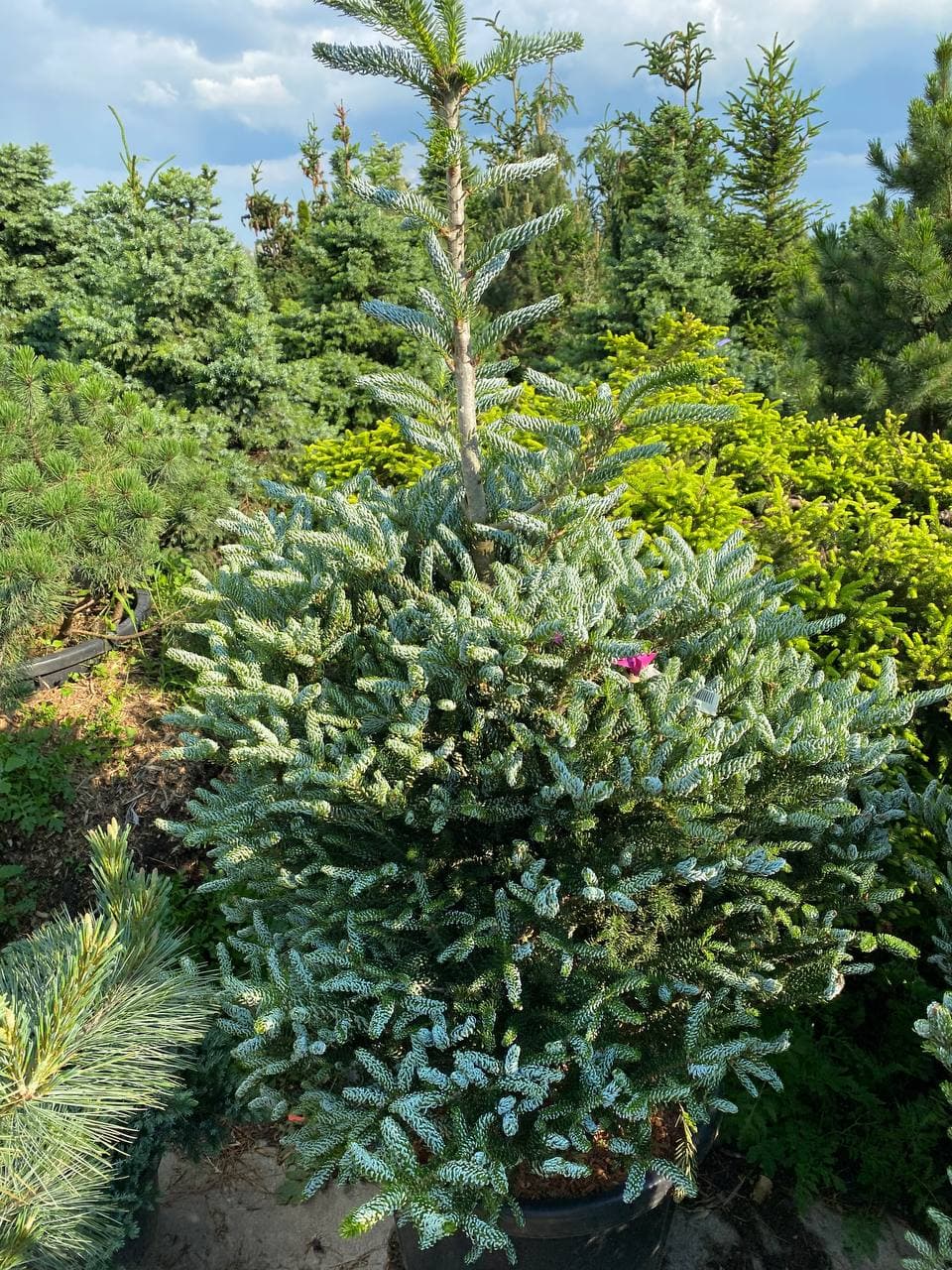 Эта пихта – настоящая волшебница! Ее уникальная биология проявляется в закрученной вверх хвое, которая эффектно демонстрирует свою серебристо-белую изнанку, создавая ощущение инея или посеребрения всей кроны. Растет медленно, образуя коническую, иногда слегка асимметричную форму. Обильно плодоносит сине-фиолетовыми шишками.