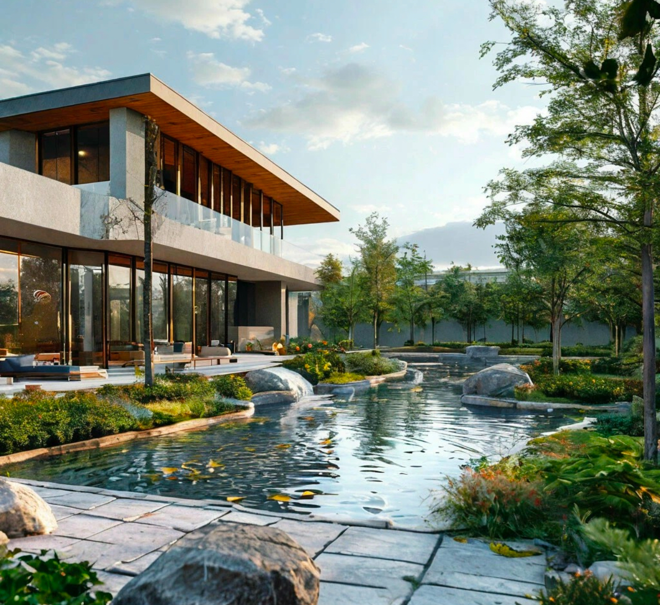 Современный ландшафтный дизайн характеризуется минимализмом и функциональностью. Чистые линии, геометрические формы и сдержанная цветовая палитра создают стильные и современные пространства. Студия ART Story разрабатывает проекты, которые включают: