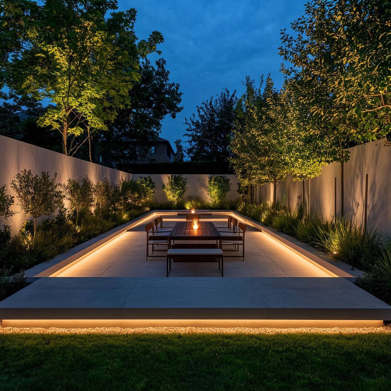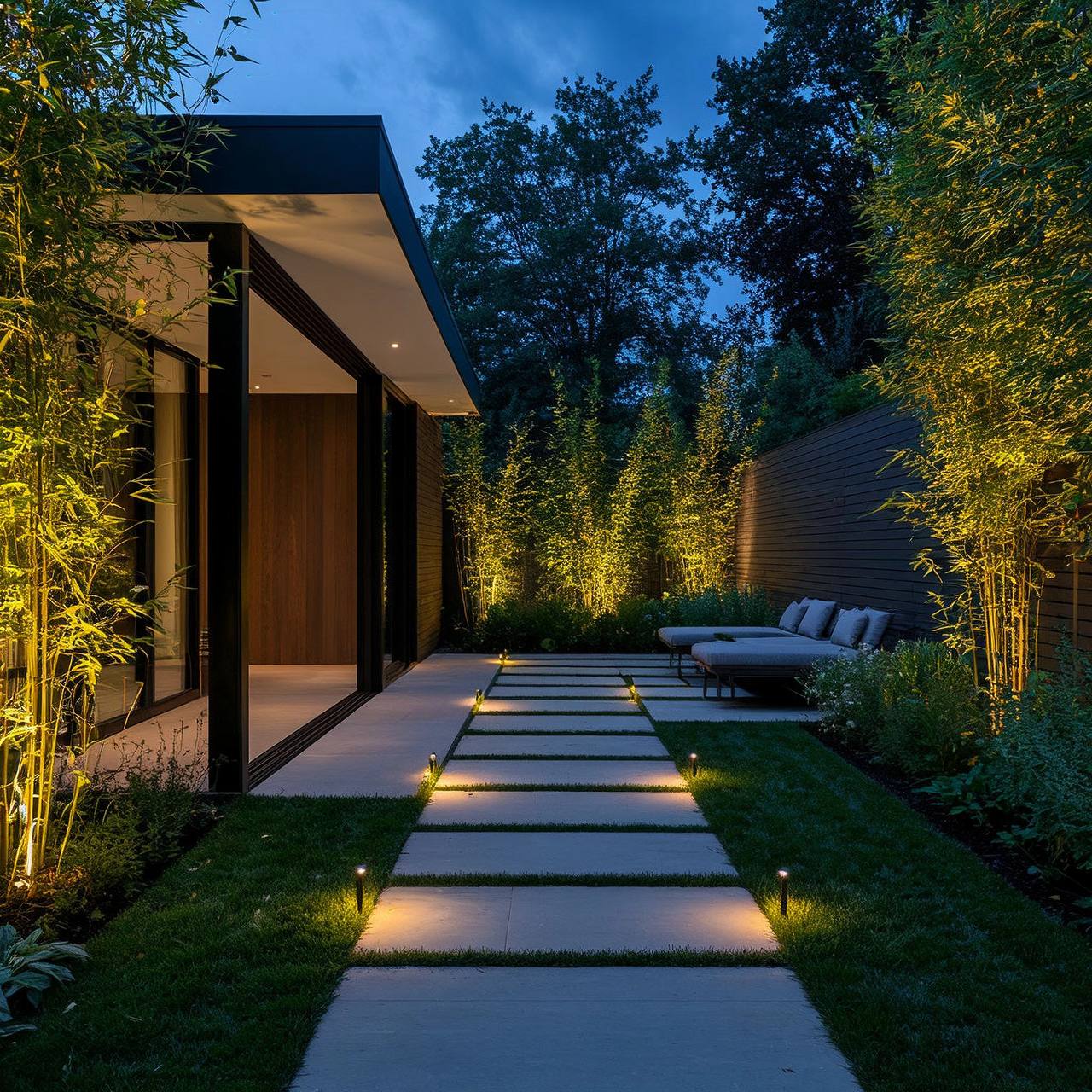 В-четвертых, подумайте об освещении. Ночной сад должен быть так же прекрасен, как и дневной. Свет должен быть мягким, подсвечивать ключевые элементы: деревья, текстуру стен, воду. Избегайте яркого, слепящего света.