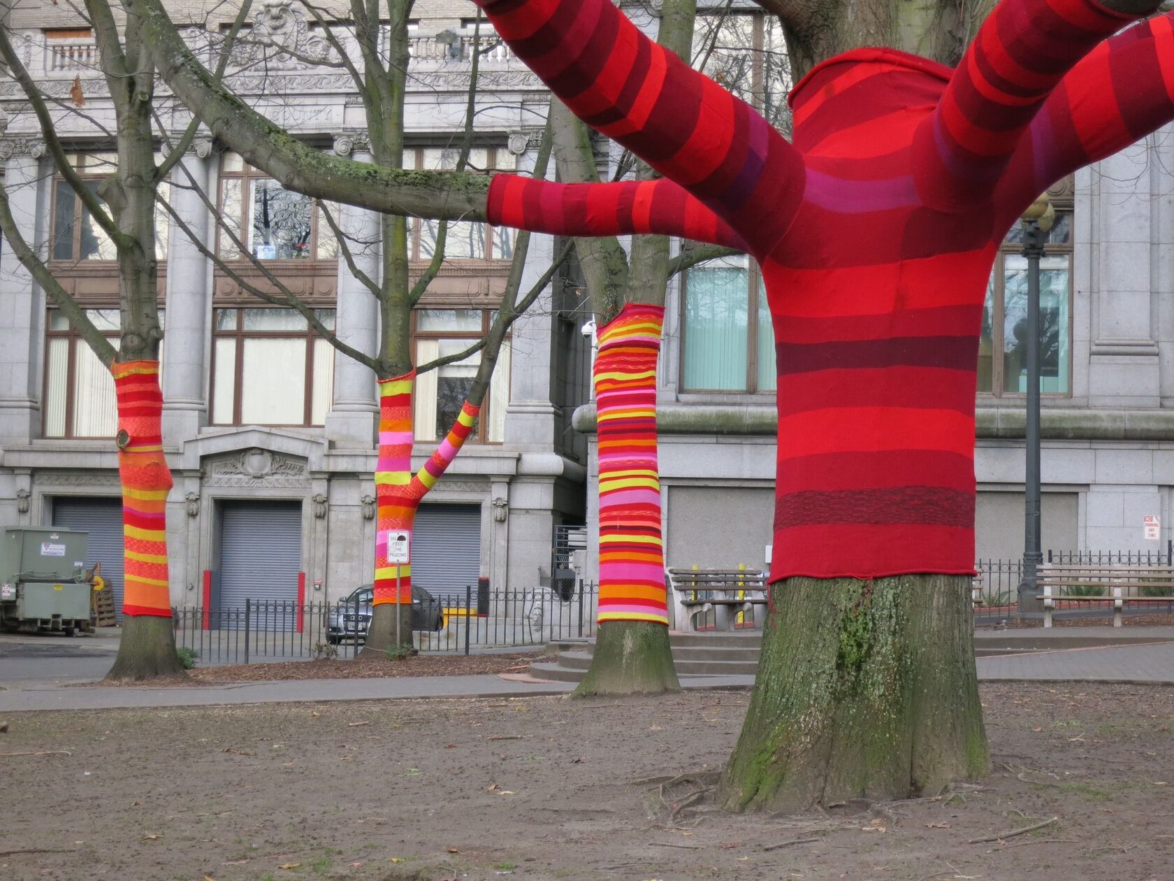 Для обвязки деревьев рекомендуется использовать только светлые материалы.