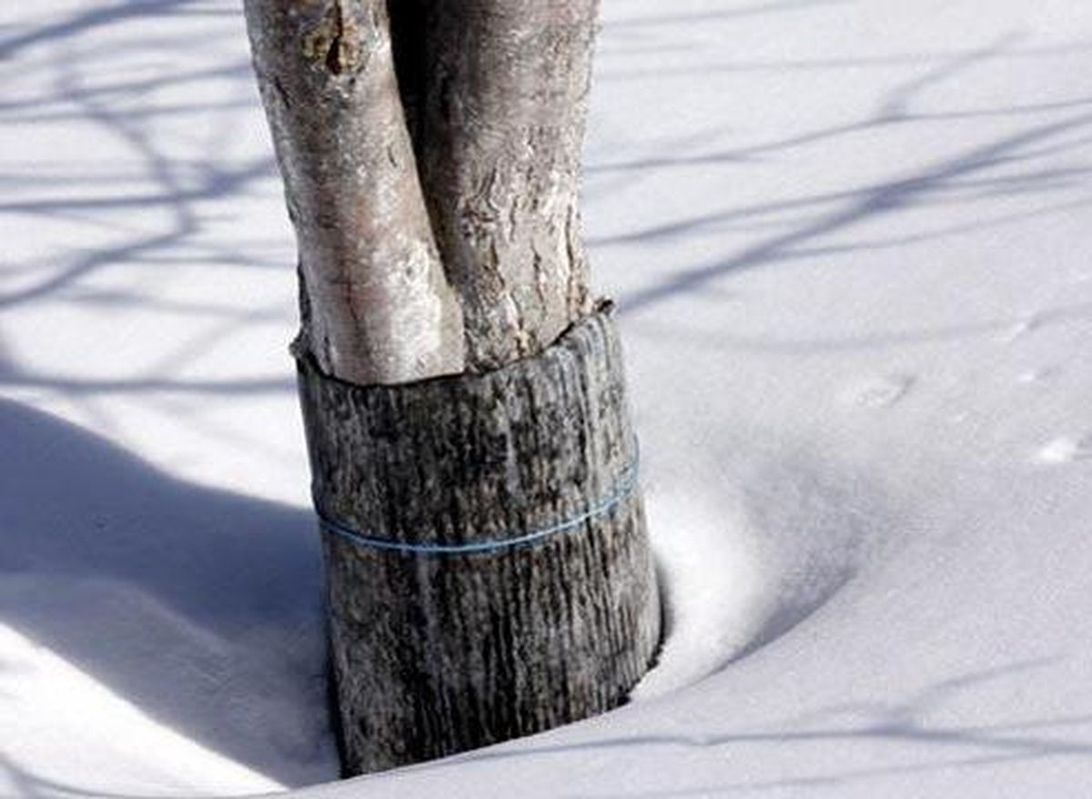 Чтобы предотвратить перегрев стволов в период активного весеннего солнца, не рекомендуется использовать чёрные или тёмные колготки для обвязки. Процесс обвязки следует начинать от основания ствола и постепенно подниматься вверх. Нижнюю часть ствола лучше окучить и покрыть перегноем или торфом.