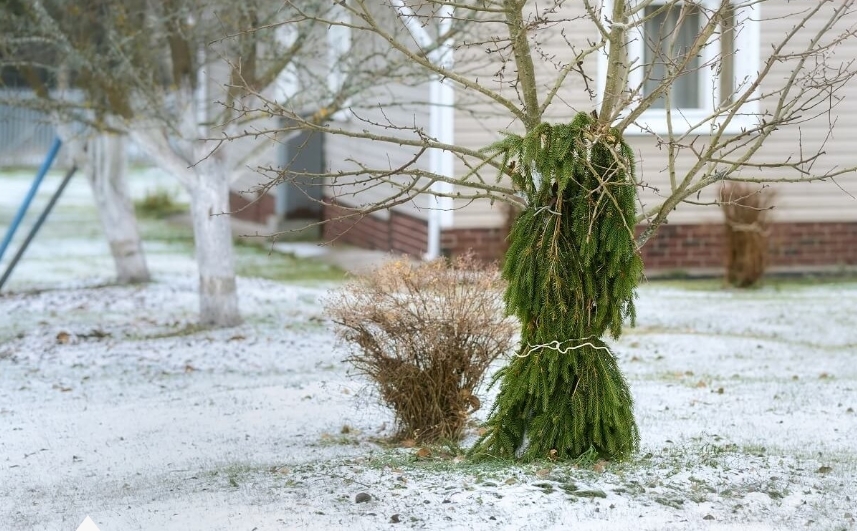 Одним из самых востребованных материалов для защиты деревьев в зимний период является мешковина. Она эффективно предотвращает солнечные ожоги, а при пропитке дёгтем служит дополнительным средством для отпугивания грызунов.